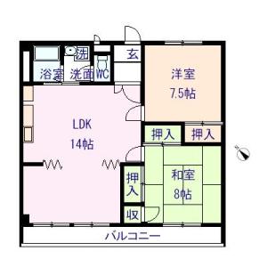 8畳、7.5帖、リビングキッチン14帖、浴室、トイレ(水洗) [65.62平方m] |